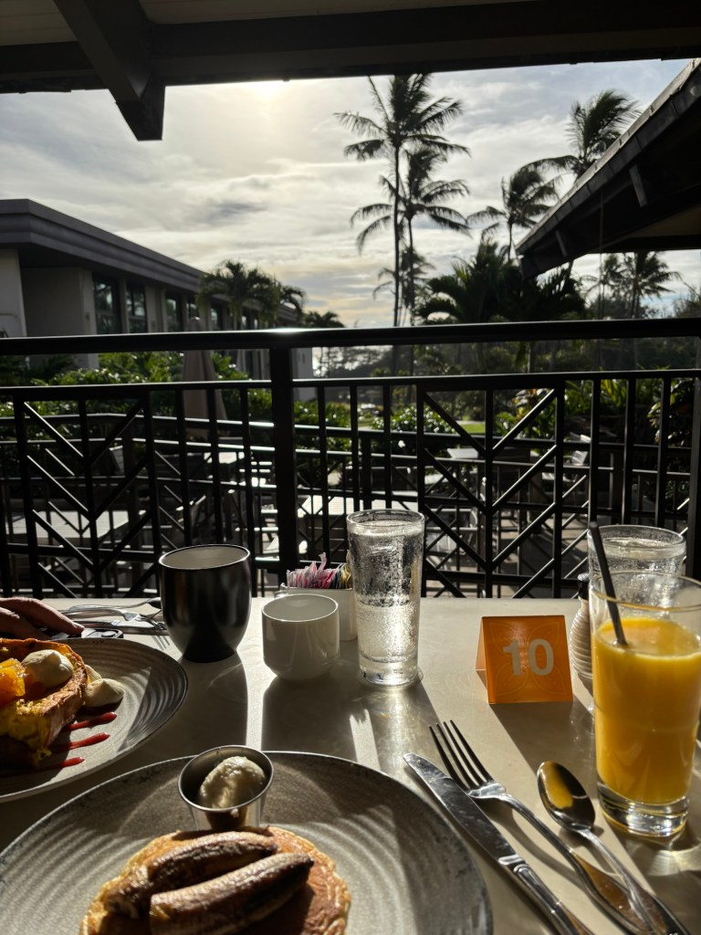 The hotel doesn’t have a great beach area, but there’s a couple of pools, a nice tiki bar, and a beautiful view of the ocean. We were happy with it, even if the food and beverage credit didn’t go very far for breakfast the next morning. The food was yummy though (banana pancakes and pineapple French toast).