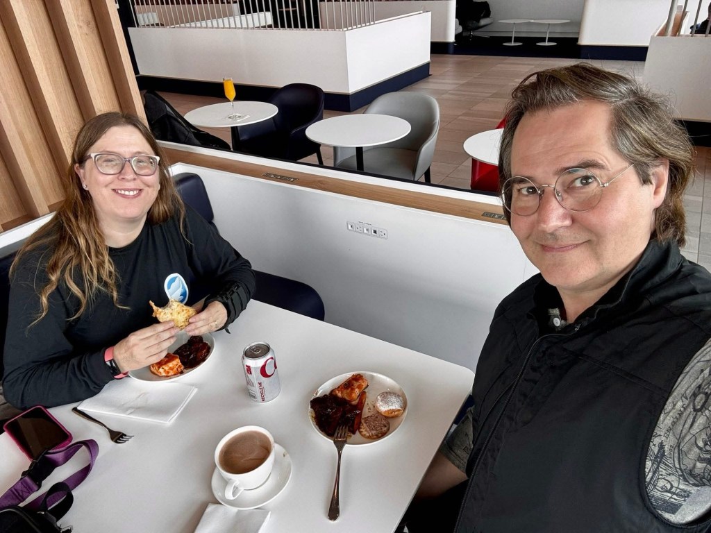 We had a lovely French dinner…I swear the flight attendant who helped me the most had hair like Anson Mount on Strange New Worlds!