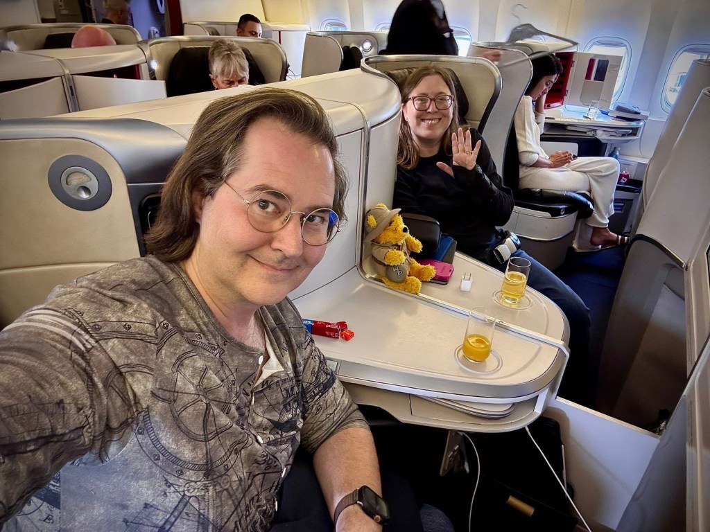Seats.aero came through for us, with an alert for Saturday afternoon seats, as we were driving to our hotel for the one night we were in Austin, Texas, for the April 2014 solar eclipse. I knew I needed to use my laptop to book, so since we were 5 minutes from the hotel, I tried to stay calm and not freak out. Then we got to the front desk to check in (this was a Courtyard) and the only person working there spent what seemed like hours (probably only 10 minutes) going through every possible variation of “I can’t help you with that, sorry” with an asshole customer on the phone. Finally we got checked in and into our room. I only screamed “WTF is my password?!” at Rob a couple times before I had all the points transferred and got our two business class seats booked. (He survived with all appendages still attached.)